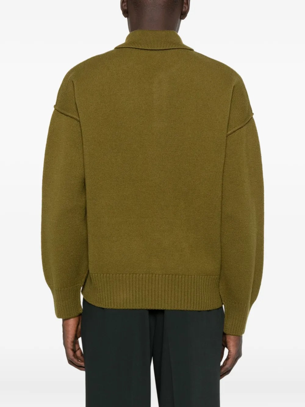 Zeytin Yeşili Polo Yaka Yün Kazak