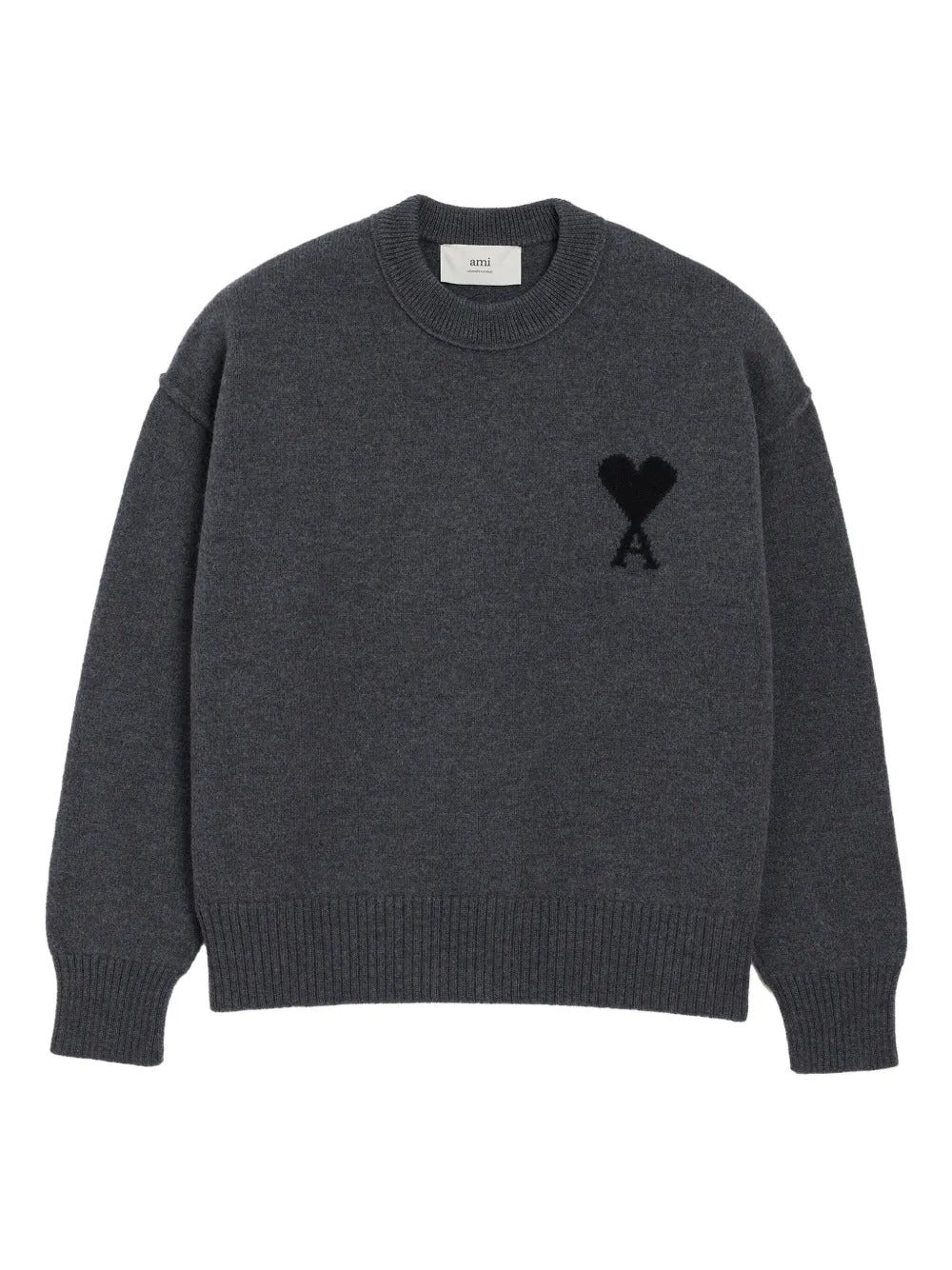Antrasit Yuvarlak Yaka Yün Kazak (Siyah Detaylı)