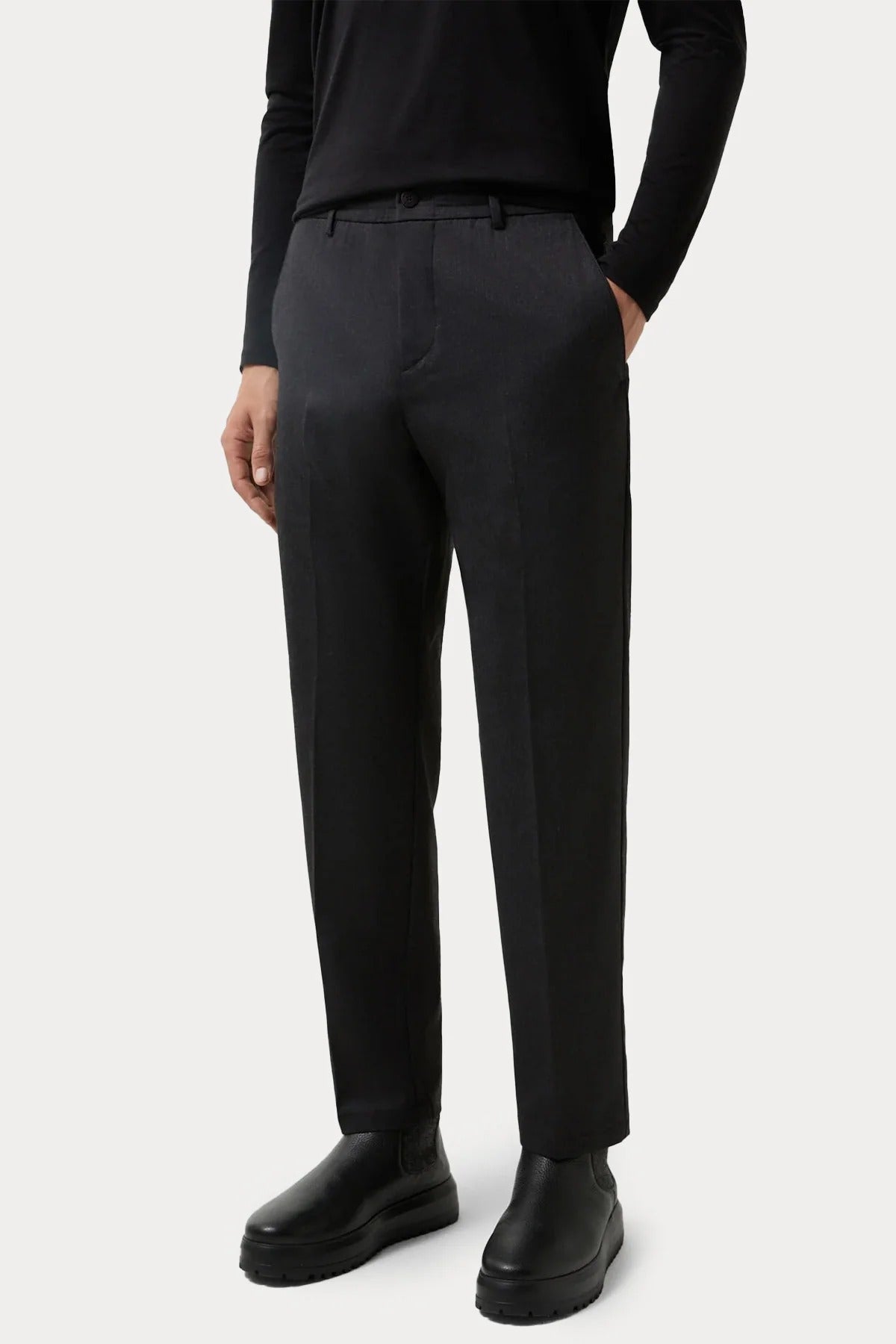 Rahat Kesim Lastikli Yün Pantolon - Füme