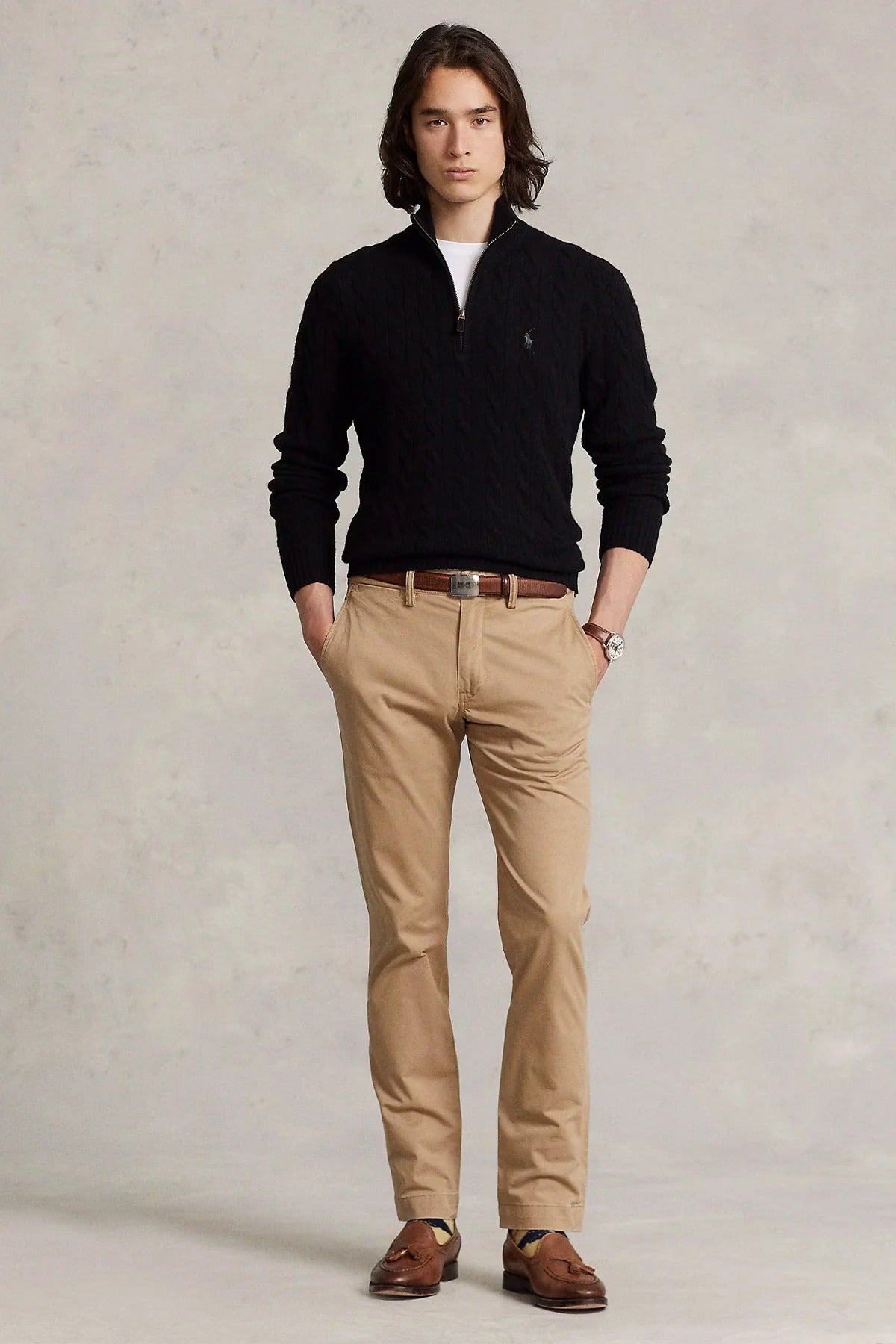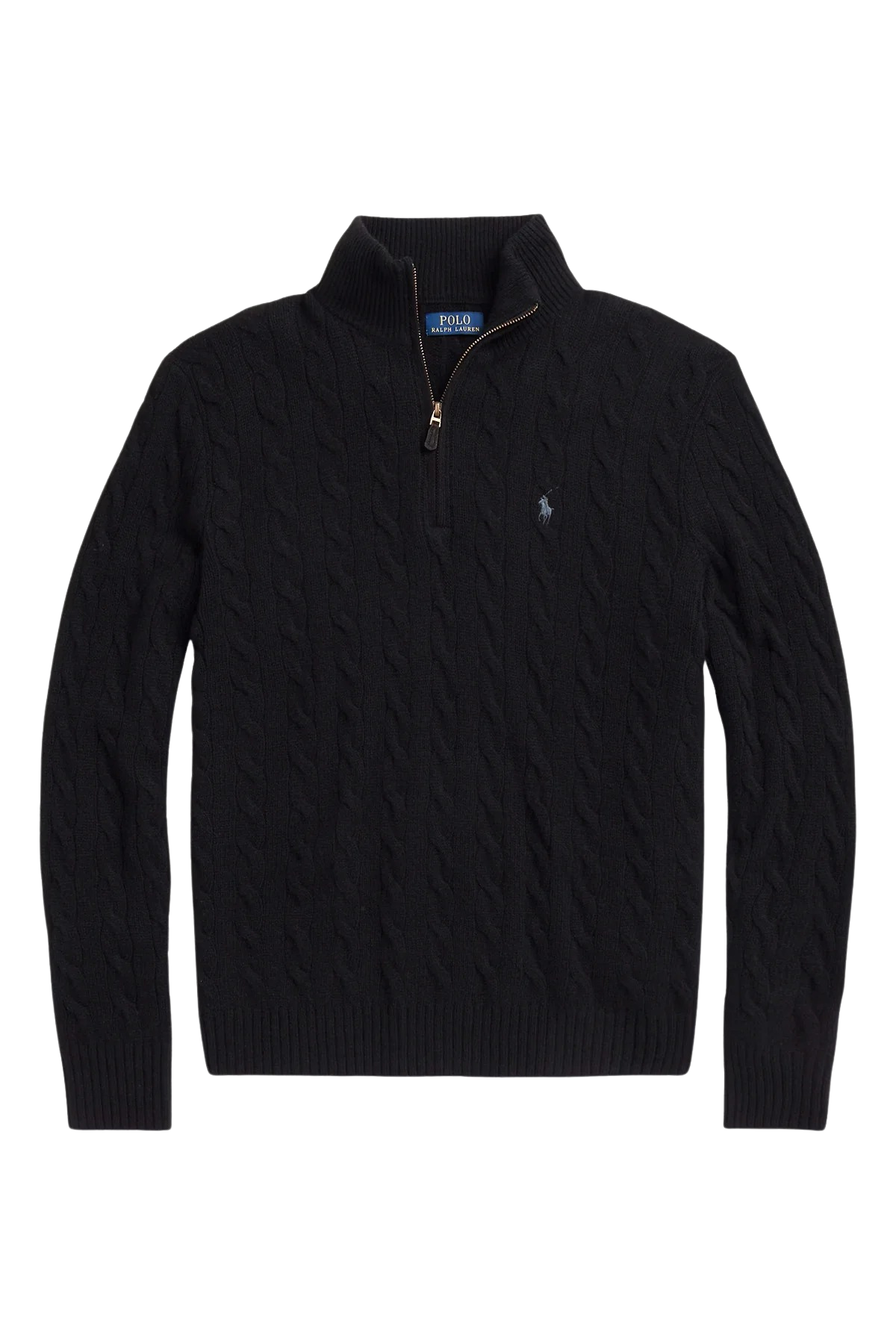 Yarım Fermuarlı Dik Yaka Saç Örgü Kaşmir Yün Triko Kazak